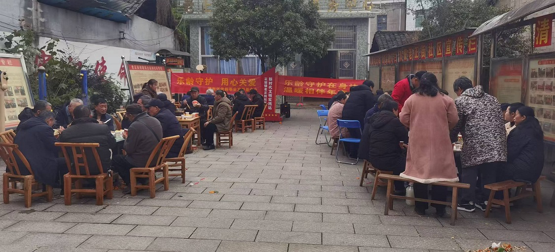 花垣县老正街社区活动中心内,60位老人围坐共享“幸福团圆宴”。红烧肉等湘味菜肴香气四溢,银发老人们畅谈往昔岁月。“同龄人相聚才有说不完的话,这顿饭暖胃更暖心!”83岁的吴爷爷感慨道。